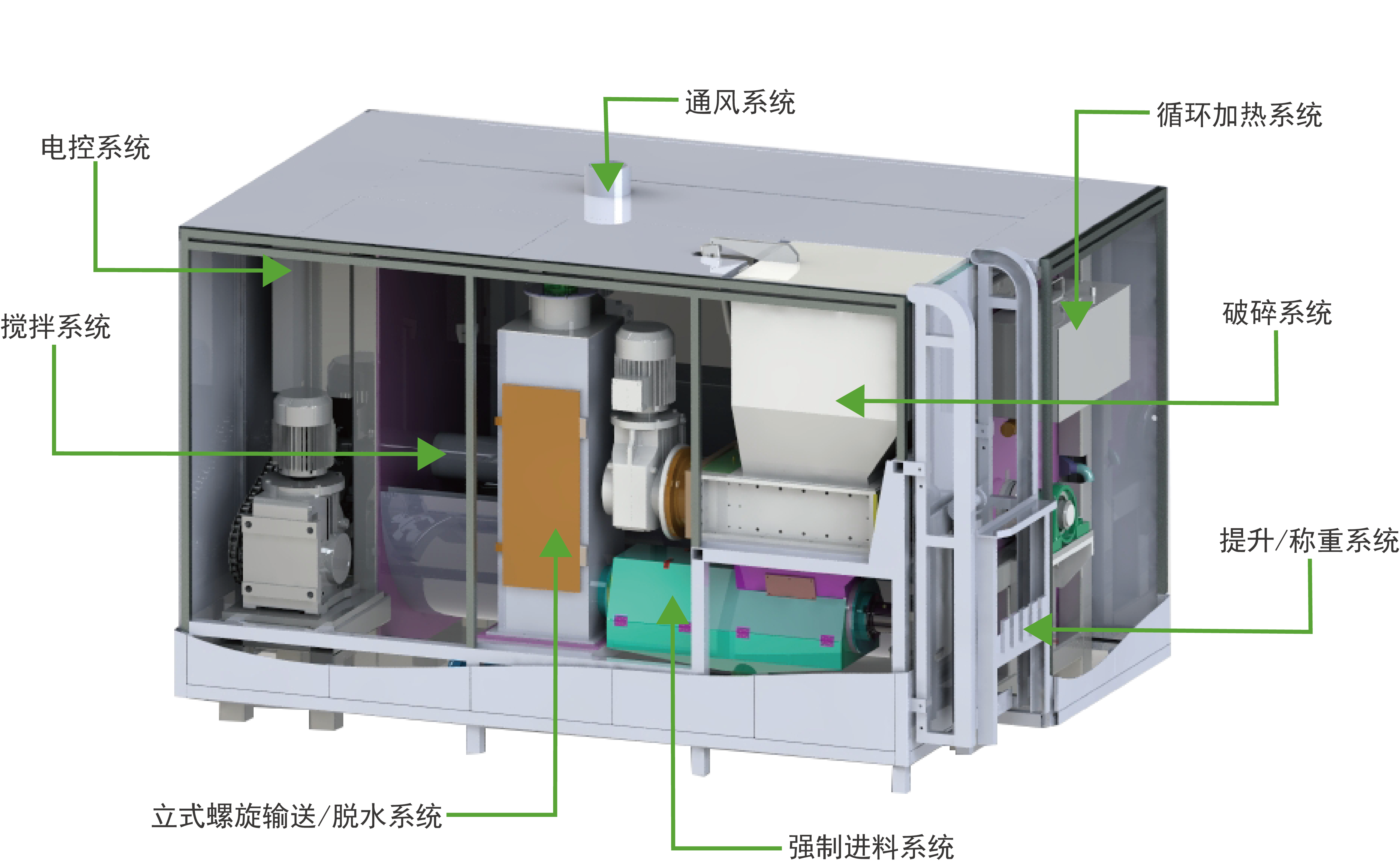 采用微生物高温好氧快速降解技术,无有害物质产生,有耗时短、易操作、降解快、费用低等特点。