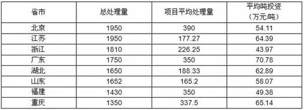 目前各地区设施建设能力相差较大,但单座设施平均规模相差不大,总处理量排名前六的省市分别为北京、江苏、浙江、广东、山东和湖北,其项目处理量占全部处理量的41.7%,说明对麻豆APP下载入口免费项目需求相对较强。除上述6省市外,项目处理量前8位的省市还包括福建和重庆。从区域分布来看,除湖北外,其它7省市均在沿海一带或为直辖市,说明经济发达城市对麻豆APP下载入口免费垃圾处理的重视程度较高。