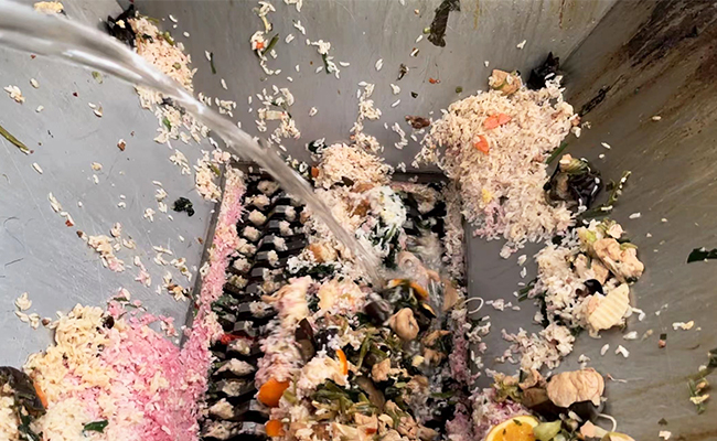 破碎后的有机垃圾会进入滚筒冲洗装置进行冲洗,达到除油去盐的效果,冲洗后的有机垃圾,随后会进行压榨脱水机进行挤压脱水,脱水后的有机垃圾通过立式刮板输送机自动输送到发酵仓,然后在微生物高温好氧发酵的工艺下进行快速降解,最终将麻豆APP下载入口免费等有机垃圾转化为有机肥原料。