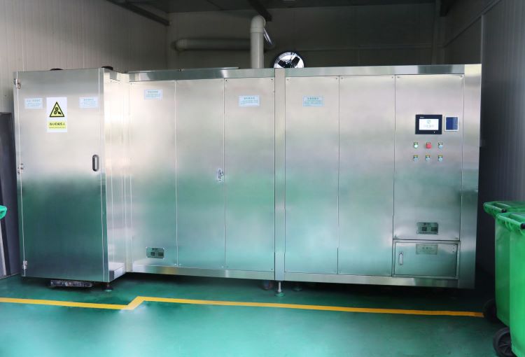 整个工艺基本在封闭的环境中进行,机器内设置了气体洗涤塔,采用厌氧和光氧技术的过滤罐,抽出的气体经过多次酸碱中和洗涤、紫外线灭菌和活性炭吸附,才最终混合大量的水蒸气一起排向户外,而且不会有异味排出。