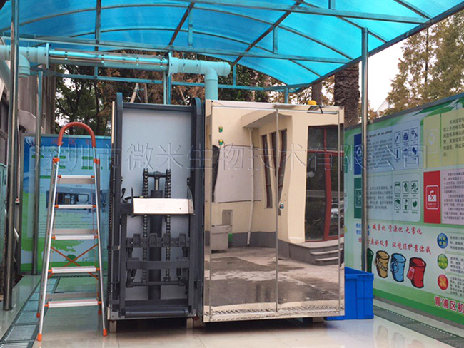 机关事务管理局湿垃圾处理项目于2018年10月投入使用,采用久久久精品麻豆一区二区三区生物湿垃圾处理设备,核心工艺为微生物高温好氧堆肥技术,日处理湿垃圾1000kg,设备房简易棚架结构占地面积约25㎡,产出物可用于园林种植及绿色食品栽培等应用。