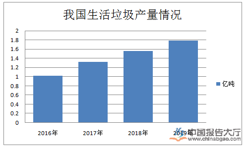 2019年我国生活垃圾产量已达到1.79亿吨,仅次于美国的2.28亿吨。生活垃圾处理行业分析指出,在过去我国生活垃圾清运量始终 高于无害化处理量,大量城市生活垃圾未经处理直接堆放,虽然垃圾堆放量已经开始逐年递减,2019年未处理垃圾仍有1700万吨,十年里垃圾累积堆放量超过5亿多吨。